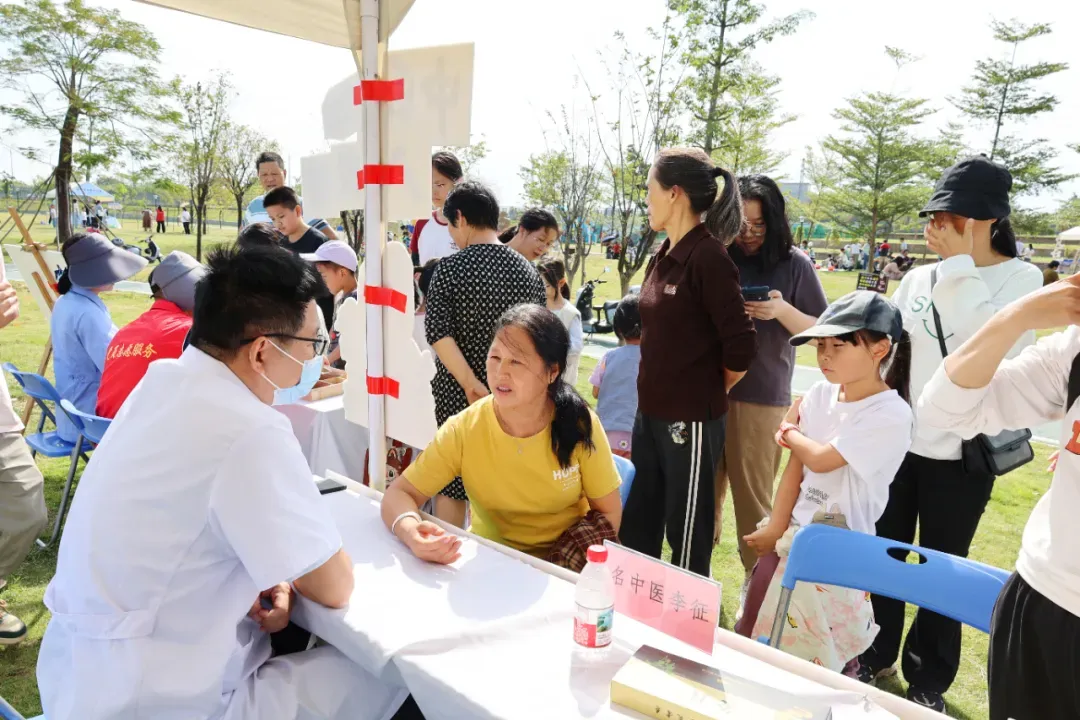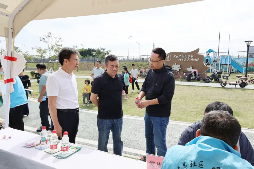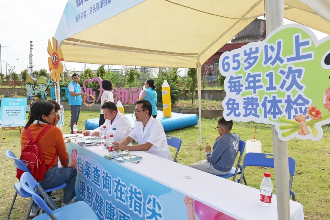 当天上午9点30分,居民签到领积分卡并参与热身运动后,活动正式开启。他们自由穿梭于各个区域,有的围在咨询摊位前提问,有的带着孩子体验亲子游戏,在轻松互动中学习健康知识。其间,副镇长何锦昌来到活动现场,了解工作开展情况。