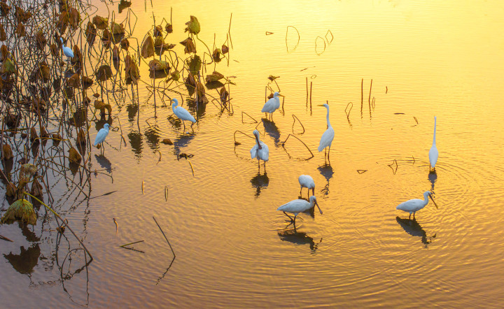 11月10日,鸟儿在江苏兴化里下河国家湿地公园内栖息(无人机照片)。