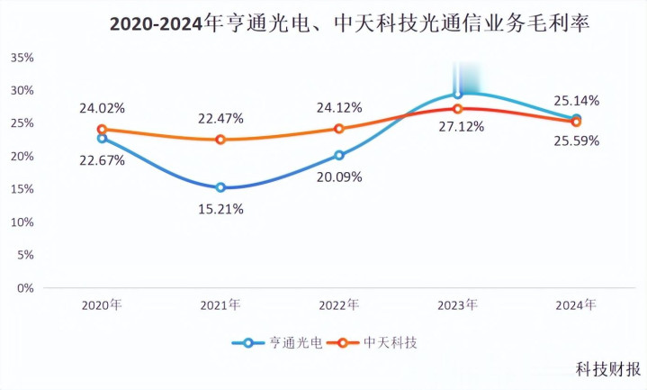 可以说,亨通光电、中天科技均已掌握光通信核心技术,该业务毛利率都在25%左右。