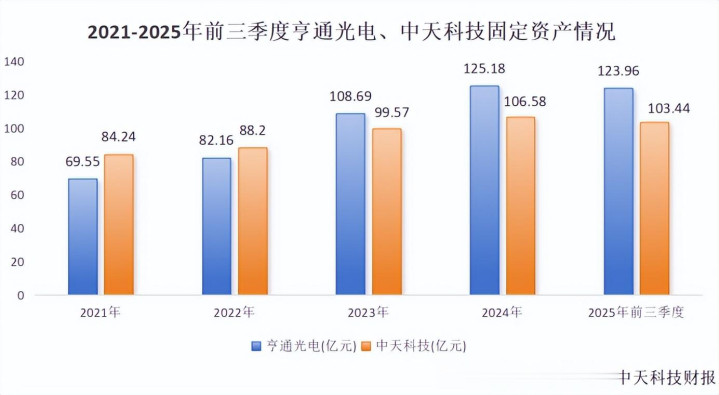 配套产能建设也如火如荼地开展。2020-2024年,亨通光电固定资产从70亿增至125亿,年复合增长率为21.3%,远超中天科技的8.4%。